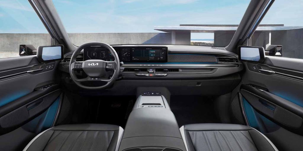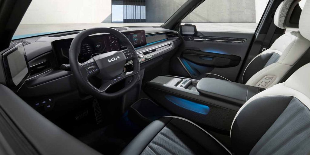 驾驭舱装备了“全景宽屏显现器”,它汇集了一个 12.3 英寸的集群显现器、一个 5 英寸的段显现器和一个 12.3 英寸的信息文娱体系显现器。EV9 的信息文娱体系 Connected Car Navigation Cockpit (ccNC) 引入了快速操控、集成查找和新 EV 形式等新功用。特别是,新的 EV 形式答应驾驭员在单个页面上查看和操控一切 EV 特定信息和功用。该功用还答应驾驭员依据自己的喜爱以小部件款式的方法自在修改和装备界面。