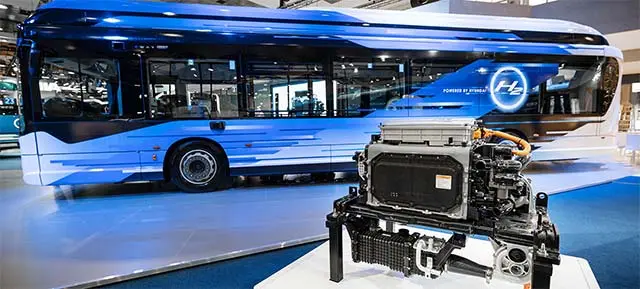 E-WAY H2是现代汽车集团旗下根据燃料电池体系的氢事务品牌HTWO供给的一款12米长的低地板城市客车,装备310千瓦的电动机和先进的燃料电池体系。该车装备四个储气罐,总容量为 7.8 公斤氢气,还有一个由依维柯集团专门从事动力总成技能的菲亚特动力科技 (FPT Industrial) 品牌出产的 69 kWh 电池组,在正常运转条件下的行进路程为 450 公里。